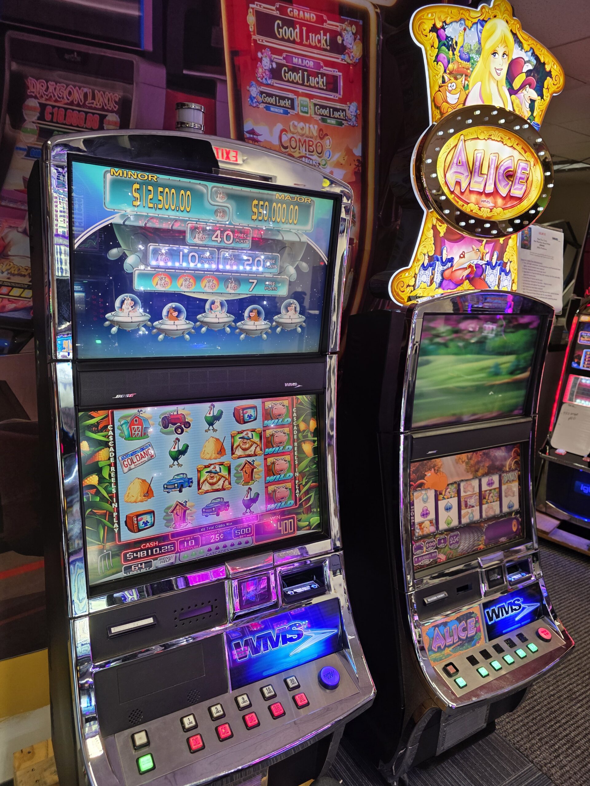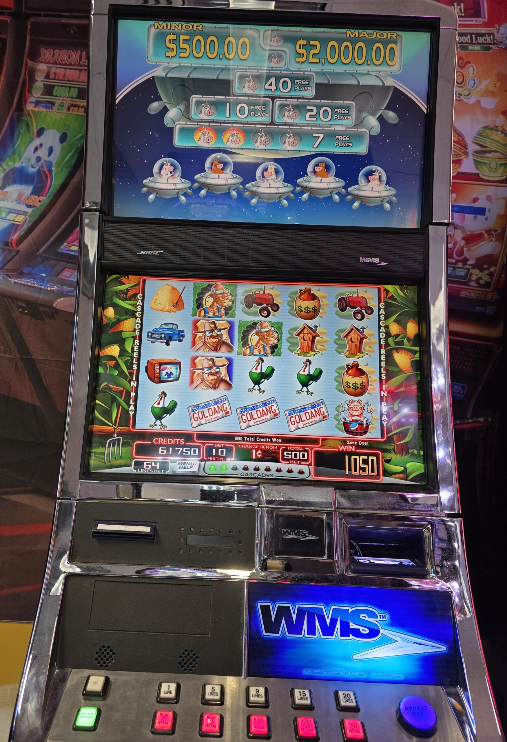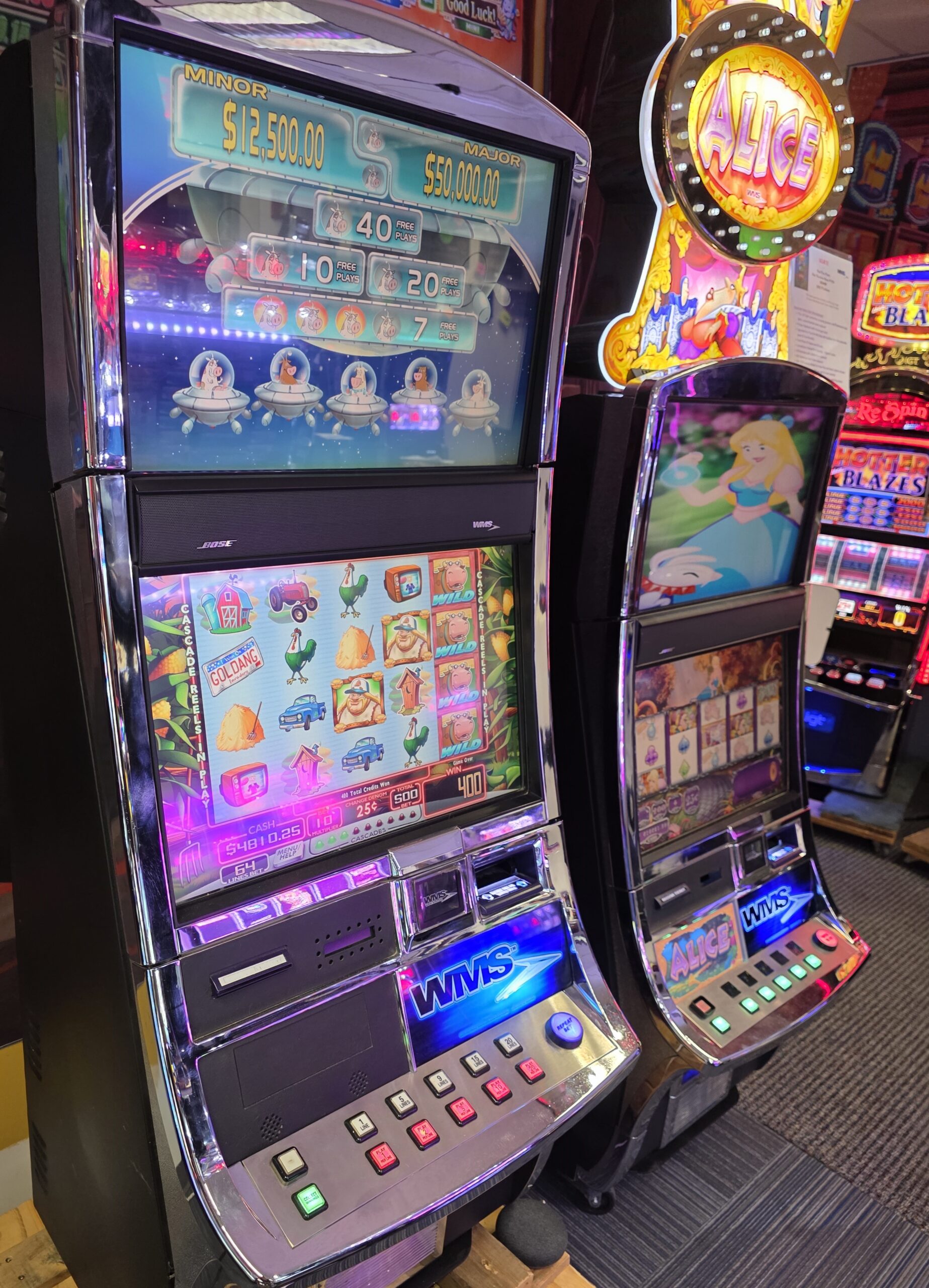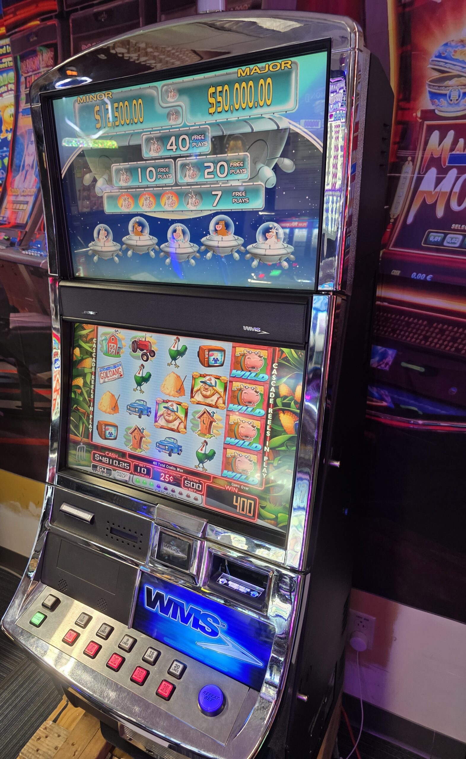 Welcome to the modern era of slot machines!!! This is the BB3 Blade by WMS Gaming running the Illinois Game Chest 1 with a focus on Elvis & Monopoly. This machine is still in use at Casinos here in St. Louis and around the country. The WMS Bluebird 3 Blade is the latest addition to our stock of newer slot machines. This machine has some of the latest technology by WMS on the casino floor. The Blade cabinet features dual 23” LCD monitors and a beautiful “halo effect” emotive lighting that will draw the player’s eye and just pull you into the game. The pretty Wood-Grained finish makes the cabinet look more like furniture than a slot machine!
