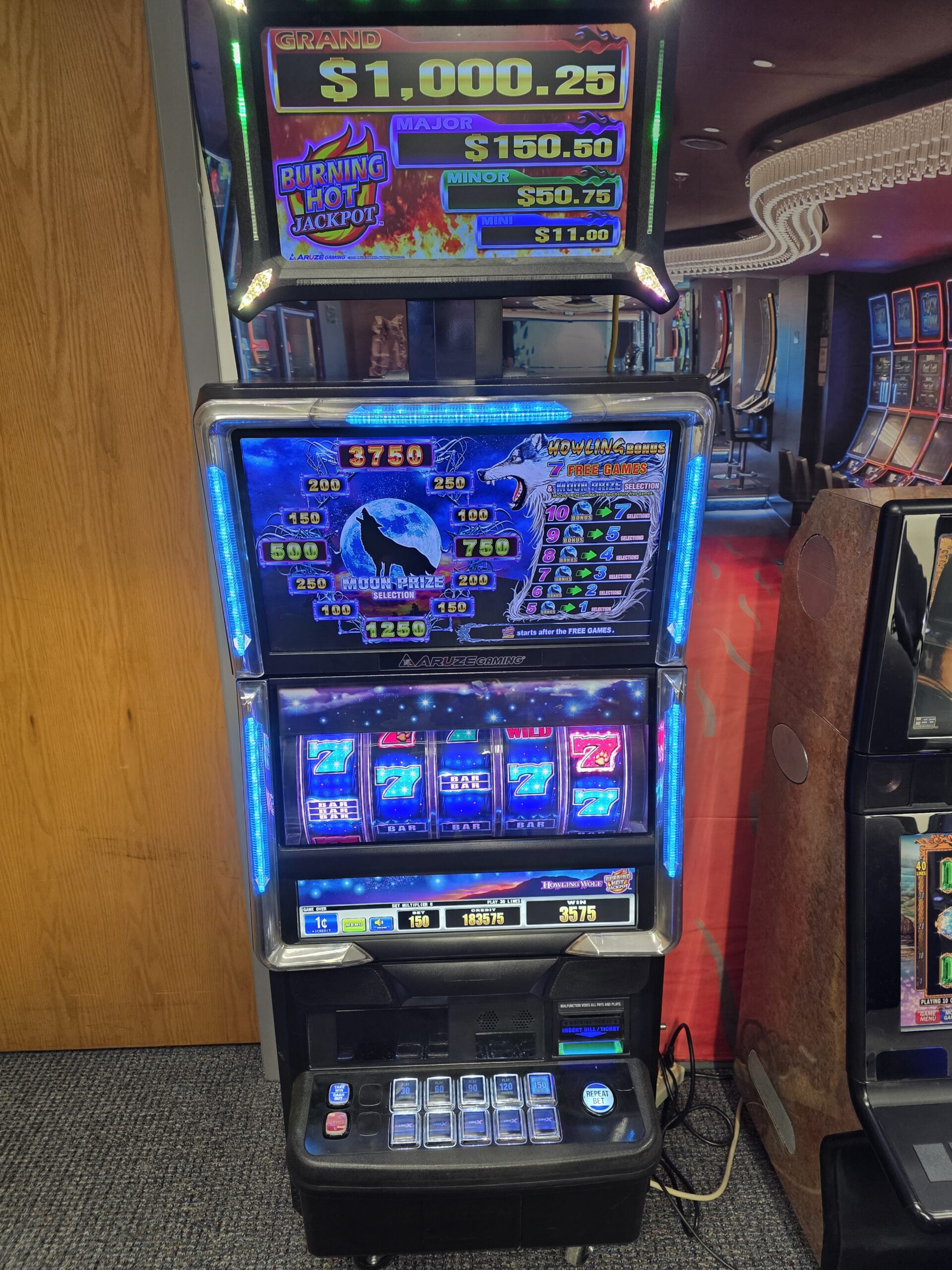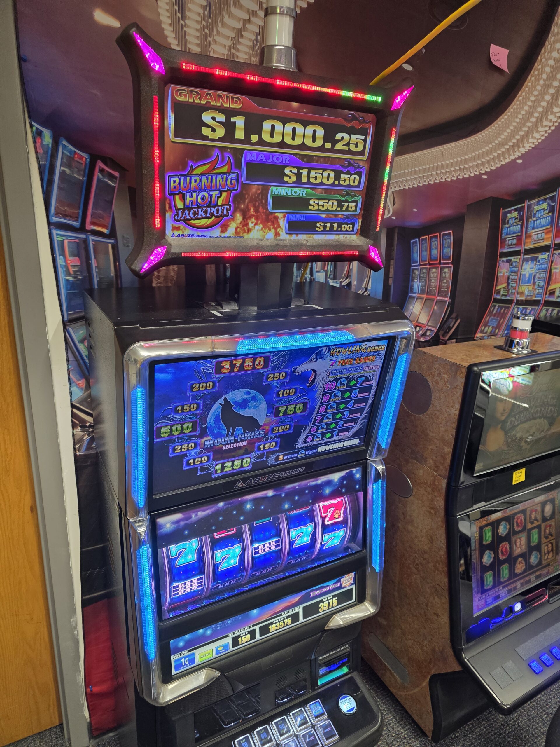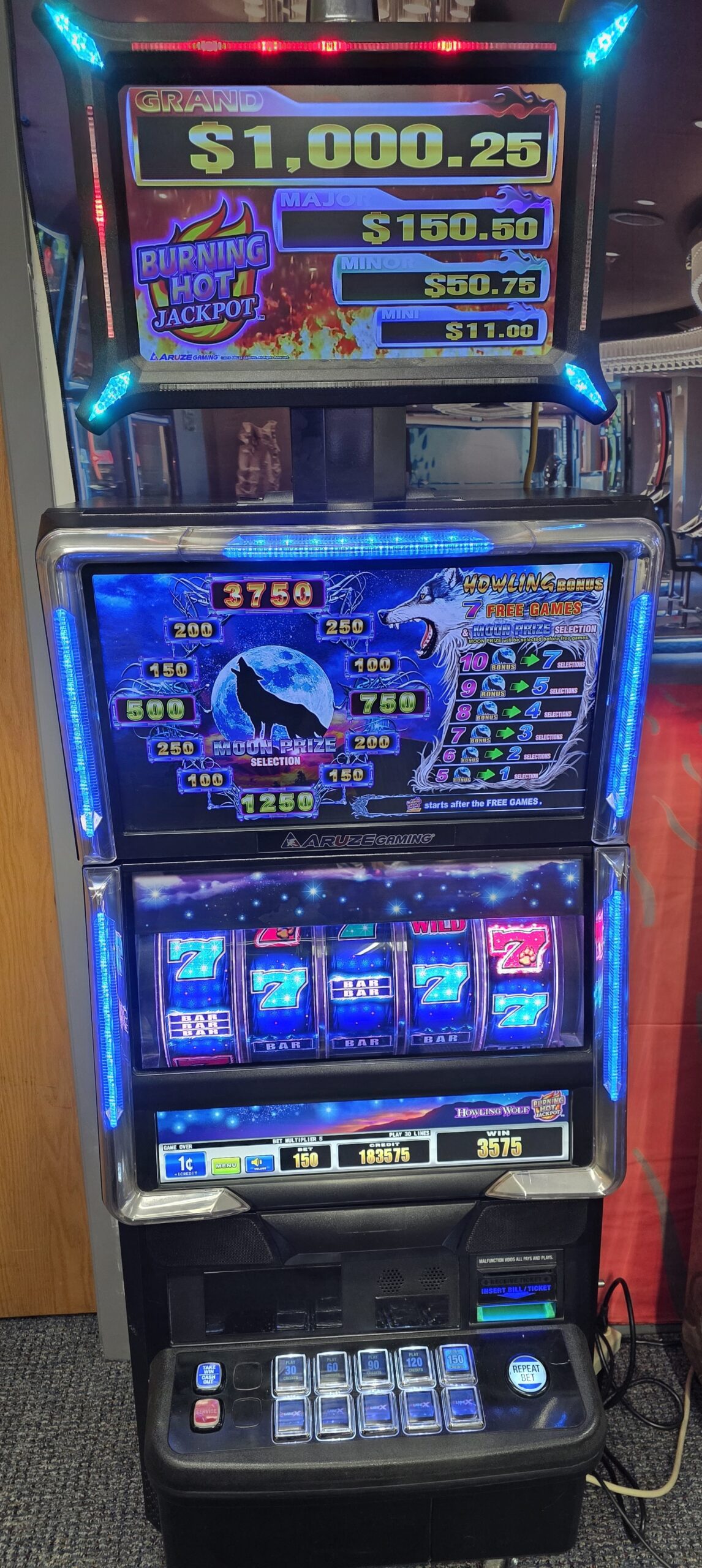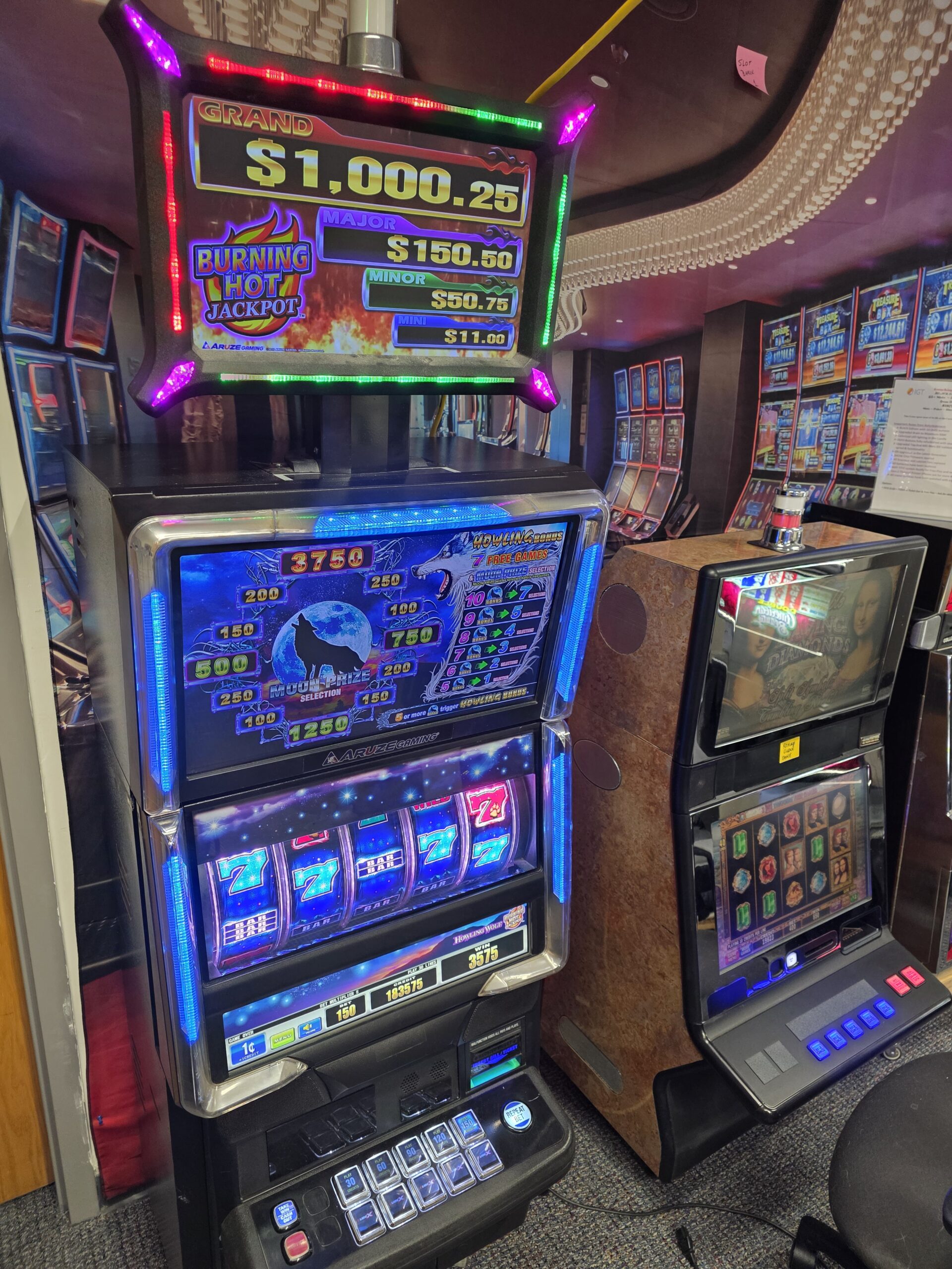 Own two pieces of Las Vegas history here. Both games are made by Aruze and are the Cube-X “Howling Wolf” coming from “Sam’s Town” in L:as Vegas and the Aruze “Platinum Bars” coming to us from the Plaza Hotel & Casino at the end of Freemont Street in Downtown Las Vegas.